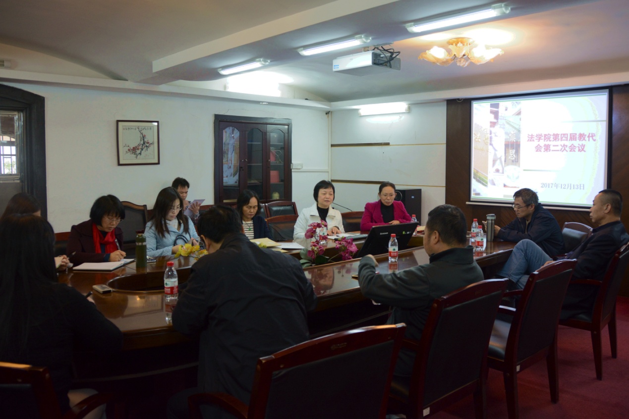 12月13日,法学院第四届教职工代表大会第二次会议在南校园学院楼举行,法学院党委罗镇忠书记、黄瑶院长、工会李颖怡主席等领导以及“教代会”代表共17人出席了会议。会议由工会李颖怡主席主持。本次会议审议讨论了绩效酬金发放方案的修改、科研报销额度等几项重要议题。代表们还听取了工会李颖怡主席作的2016年工会工作总结和2017年工作汇报。会议征求了教代会代表对学院工作和领导班子的意见。与会代表就各项议题进行了认真和热烈的讨论。会议所达成的共识形成了《会议纪要》,为今后学院相关工作的开展提供了明确的指引和依据。教代会也将继续在促进学院事务的民主决议、民主管理和民主监督过程中发挥积极作用。