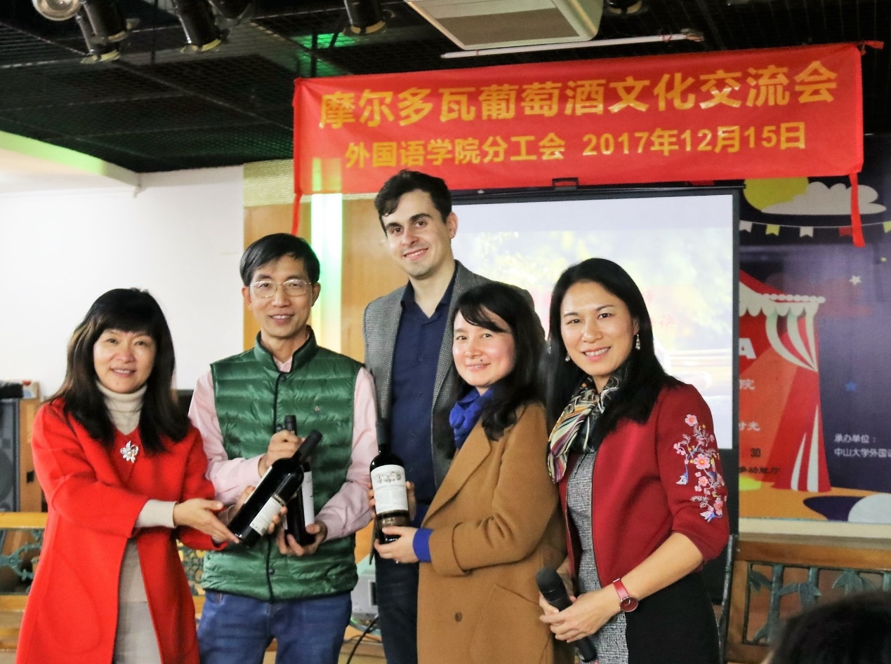 12月15日下午,外国语学院工会组织的 “摩尔多瓦葡萄酒文化会”活动在六楼多功能厅举办,活动以中西葡萄酒文化交流为契机,旨在搭建平台传递构建幸福家庭的秘笈。土木工程学院党委曹新书记、数据科学与计算机学院分工会王甲海主席及生科院、物理学院等兄弟工会领导和老师及学院近40位老师参加了本次活动,活动由外国语学院分工会主席吴小燕主持。