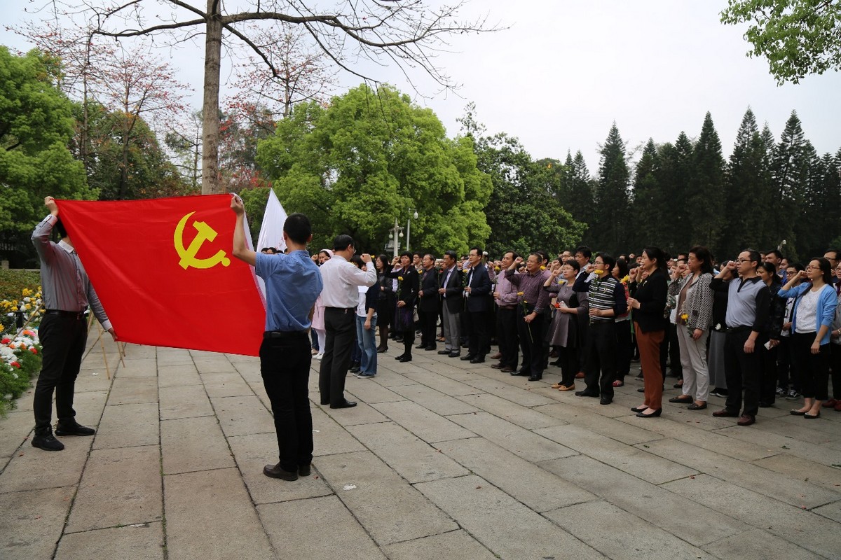 祭奠队伍整齐列队,在院领导的带领下,拾级而上,来到庄严的纪念碑前。党委副书记程斌同志领誓,新党员进行入党宣誓,老党员重温入党誓词老党员重温入党誓词。党员们面向党旗,举起右手,庄严宣誓——“我志愿加入中国共产党,拥护党的纲领,……随时准备为党和人民牺牲一切,永不叛党”。