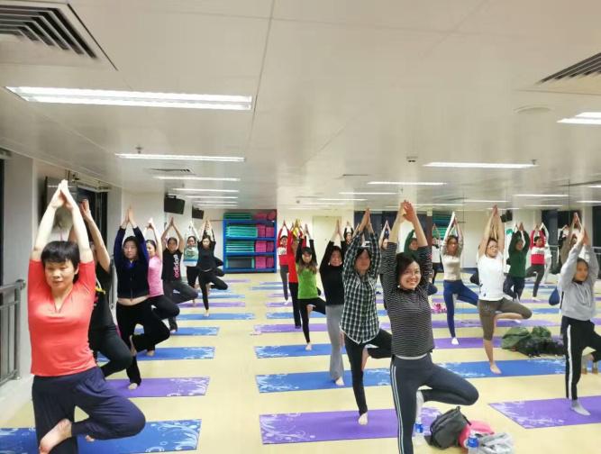 在“三八”节当天迎来了今年瑜伽培训班开班,吸引了不少职工参加,瑜伽室内座无虚席,不少职工是多年来一直坚持瑜伽锻炼的,因为大家都知道练习瑜伽能消除疲劳,平静心境,使人保持一种舒畅宁静的状态,充分享受人生。