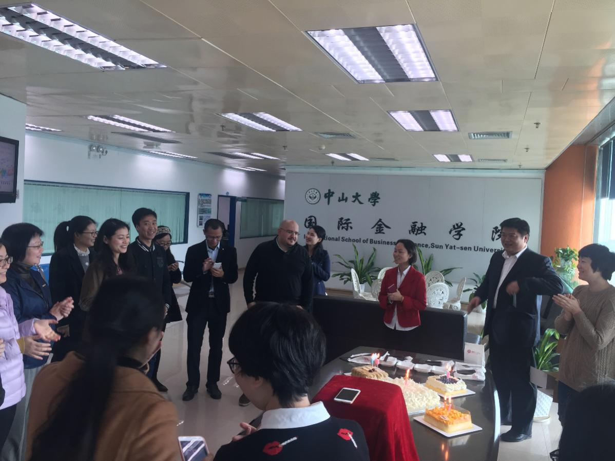 2016年12月28日,国际金融学院工会为学院11、12月过生日的王链、田凤平、崔丹、余译青、彭涛、周天芸、程敏英、蒋娇、卢珍、欧瑞秋、黄洁宏、Youssef等12位老师举办了集体生日会,同时欢迎2016年入职的钟一彪、靳祥鹏、吴意、李瑞鹏、彭涛等老师加入国金大家庭,欢送黄洁宏老师调到珠海校区党政办就职。