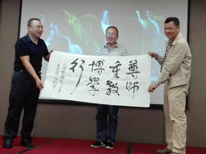 我校生命科学学院王永刚副教授现场挥墨,书成“尊师重教博学行”、“博学精神,博爱人生”赠予yl23455永利集团高教院博学MBA同学会。