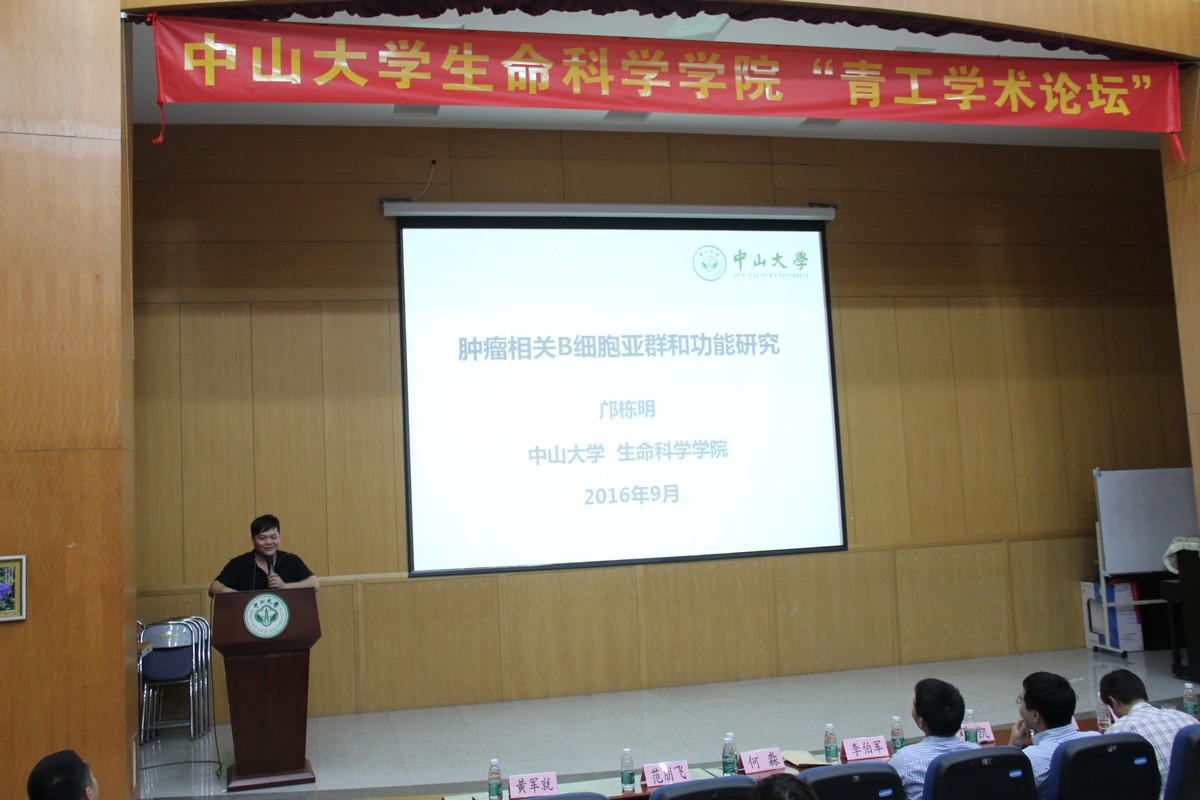 由生命科学学院分工会主办的yl23455永利集团生命科学学院首届“2016青工学术论坛”于9月29日下午在贺丹青堂讲学厅顺利举行。出席本次论坛的嘉宾有生命科学学院党委李伯军书记,学院分工会副主席何淼教授,中山医学院邓凯教授,生命科学学院邝栋明教授,黄军就教授,范朋飞教授,黄盛丰教授。论坛由生命科学学院分工会青工委员刘峰老师主持。