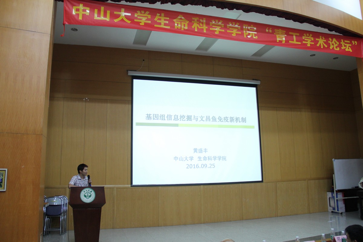 最后,黄盛丰教授讲述了自己在不断的尝试和挫折中培养独立思考的能力以及练就了坚韧不拔的科研精神,并且结合其现目前的研究情况作了《基因组信息挖掘与文昌鱼的免疫机制》的学术演讲。
