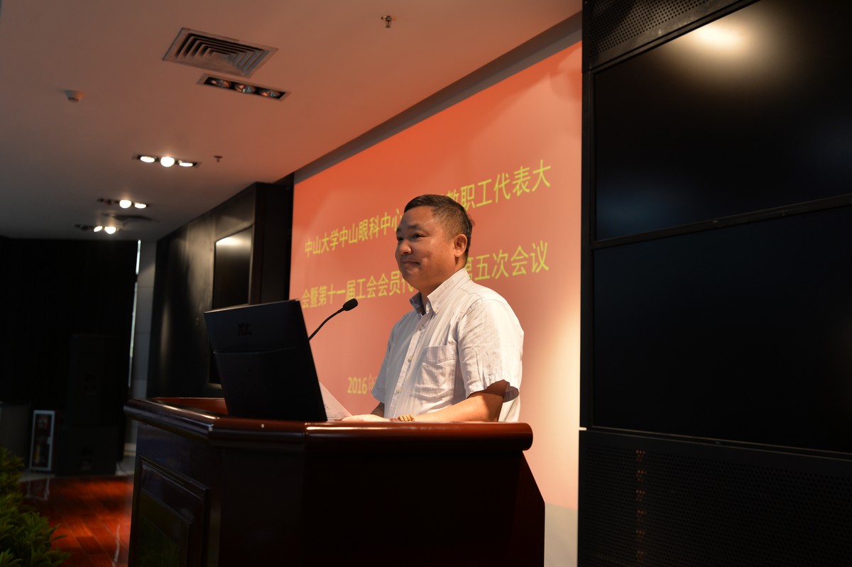下午2时,大会在庄严的国歌声中开幕。校工会副主席李烨首先致辞,对中心此次会议的召开表示祝贺,并表示中山眼科中心工会多年来取得了众多国家级的荣誉,是学校工会的一面旗帜,并感谢眼科中心党委、行政和工会对学校工会工作的积极支持,希望中心工会继续保持优势,做出更大成绩。