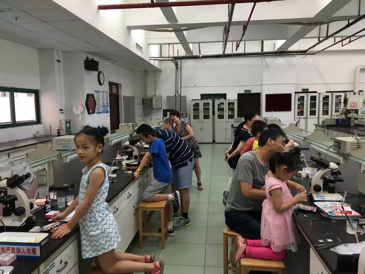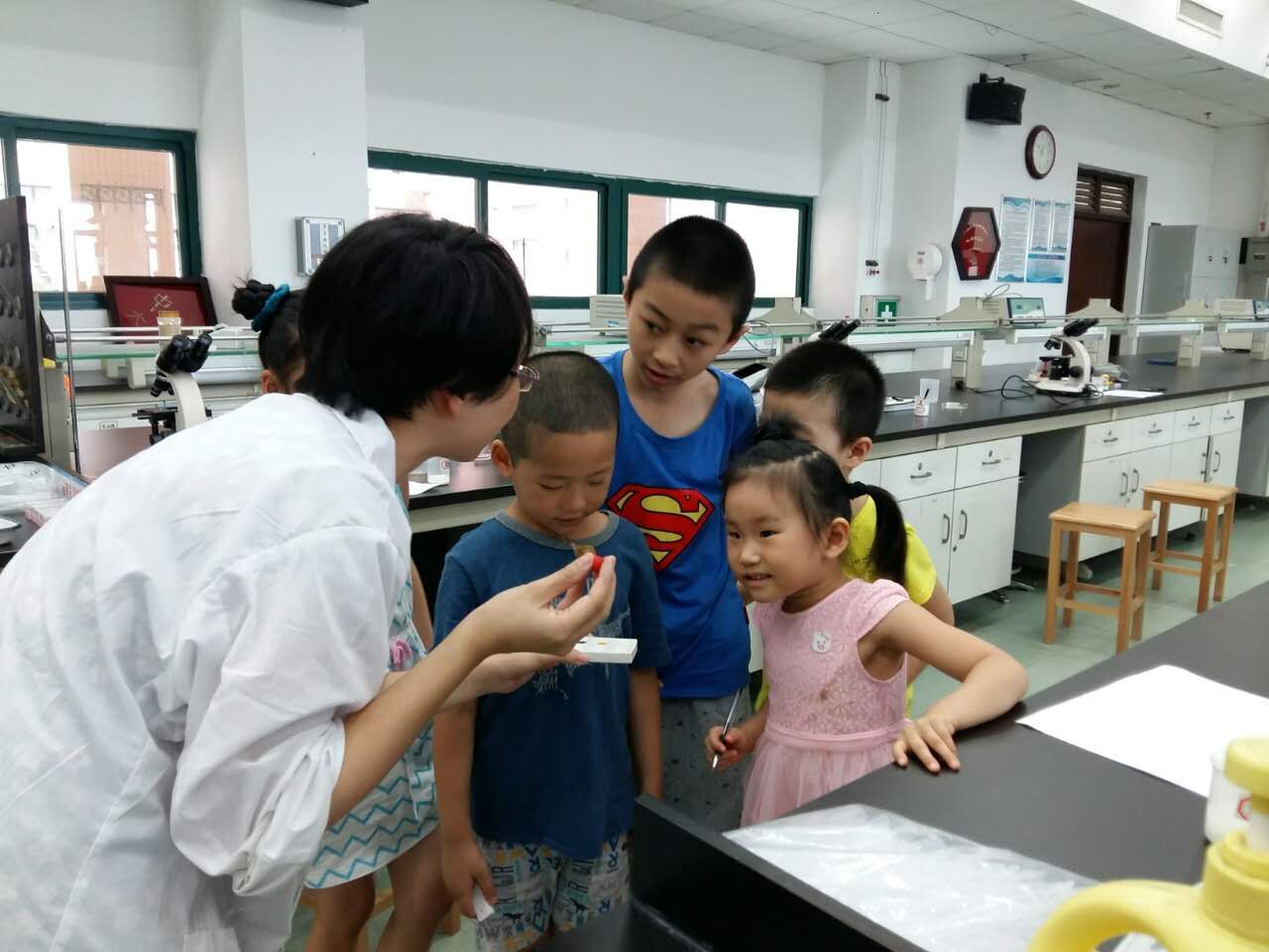 6月1日下午,在学院热心老师的倡议和学院、工会领导的支持下,药学院举办了以观察微观世界为主题的亲子科普活动。活动邀请了赵志敏老师、欧田苗老师和吴琳娜老师作为科普员,开放药学院229实验室作为活动场所。