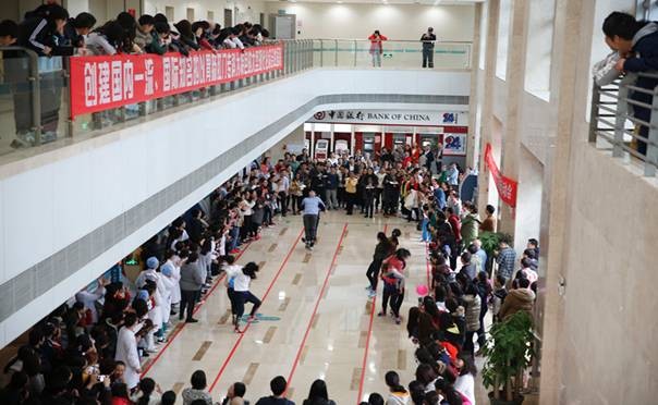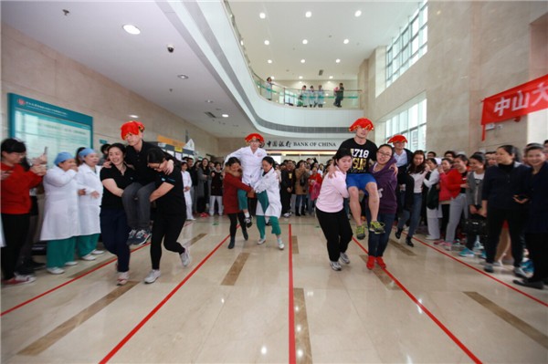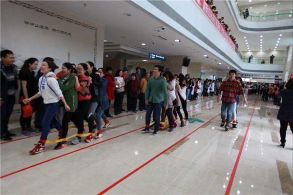 2月25日下午3点,附属六院综合大楼南门大厅内欢声笑语不断、加油呐喊声此起彼伏,由院工会和团委组织的第一届教职工趣味运动会热火朝天地进行着。来自全院22个科室的300多名选手参加了此次运动会。