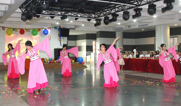 联欢会会场布置简单喜庆,气氛欢快热烈,节目精彩纷呈。联欢会在合唱《回娘家》优美和欢快的旋律中拉开了序幕,紧接着,彰显着女性青春活力、成熟干练、优雅韵味等不同风采的时装秀,具有时代感的舞蹈《六、七、八、九O》,柔美的古典舞蹈《落花》,形式多样的合唱《映山红》、《好人好梦》、《时间都去哪儿了》,欢快的歌曲串烧《致青春》,诙谐搞笑的小品《黄河大合唱》等节目以及热闹好玩的游戏《两人三足踩气球》轮番上演,将现场气氛推向一个又一个高潮。最后,全场共同歌唱《走进新时代》,展现了财务处全体职工积极向上、团结进取的精神风貌和对美好生活的向往与憧憬。联欢会在欢歌笑语中落下帷幕。