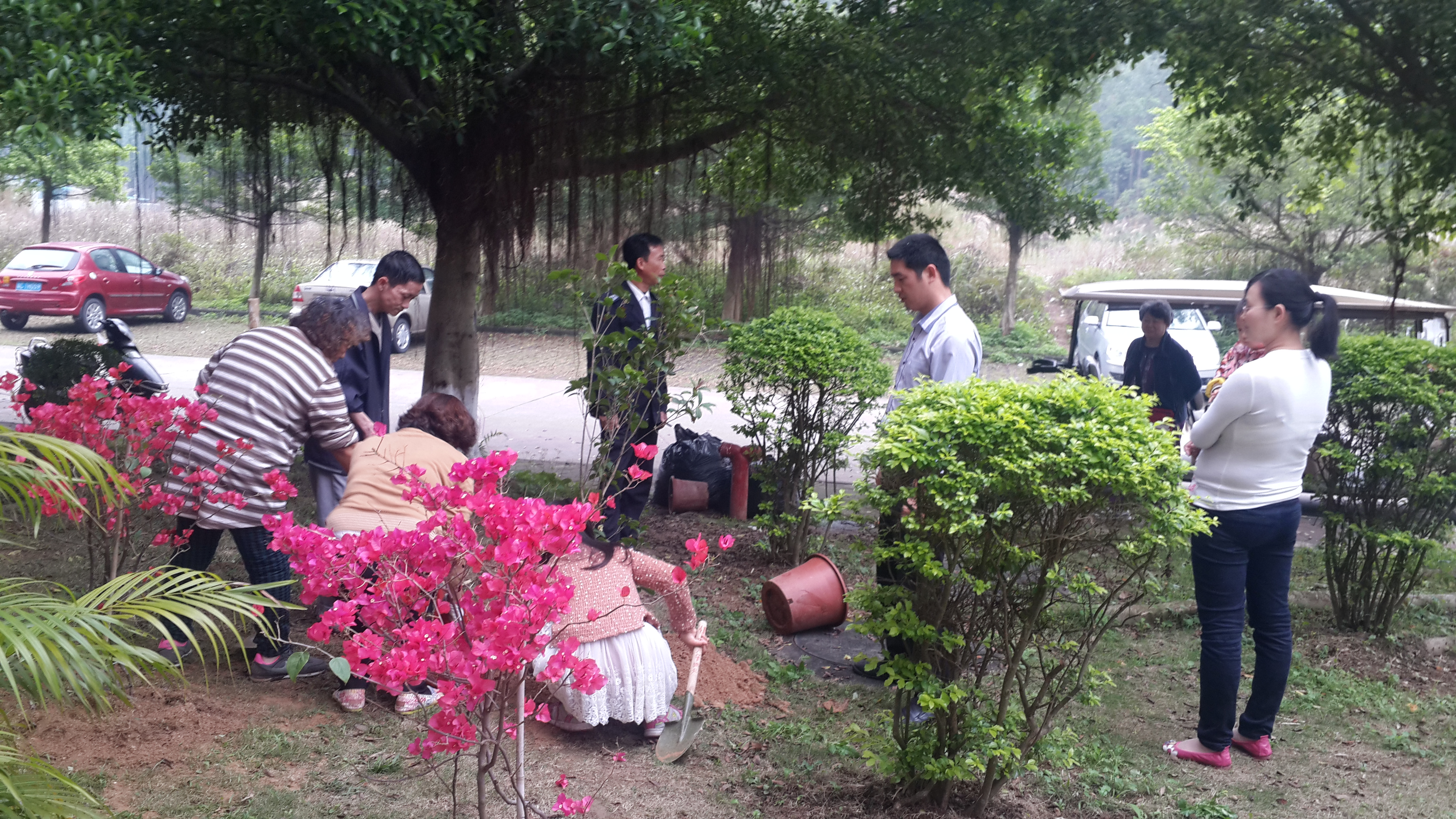 春光美好,正是万物生长季节, 3月14日上午,博雅苑业主委员会联合物业公司组织小区业主开展“义务植树,绿化家园”活动。活动由业主委员会和物业公司提供树种和种植工具,树种以观花观果树木为主,包括桂花、茶花、三角梅、杜鹃花、栀子花、白兰花、紫牡丹、沙田柚、佛手、人心果等,业主们认领树种后负责栽种。博雅苑男女老少,种花植果,笑逐颜开,心怀希望,期待明年此时,赏花摘果。