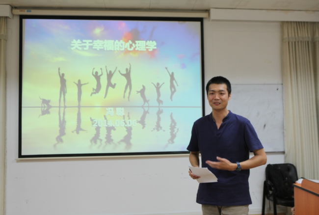 6月份,国际汉语学院举办最佳党日活动暨“快乐工作,幸福生活”工会系列讲座第三讲。本次活动由国际汉语学院教工党支部、联合党支部、学生党支部以及学院直属部门工会联合举办。我校哲学系讲师冯聪博士应邀主讲“幸福心理学”。讲座由国际汉语学院罗晶副院长主持,该院30多位教职员工参加。