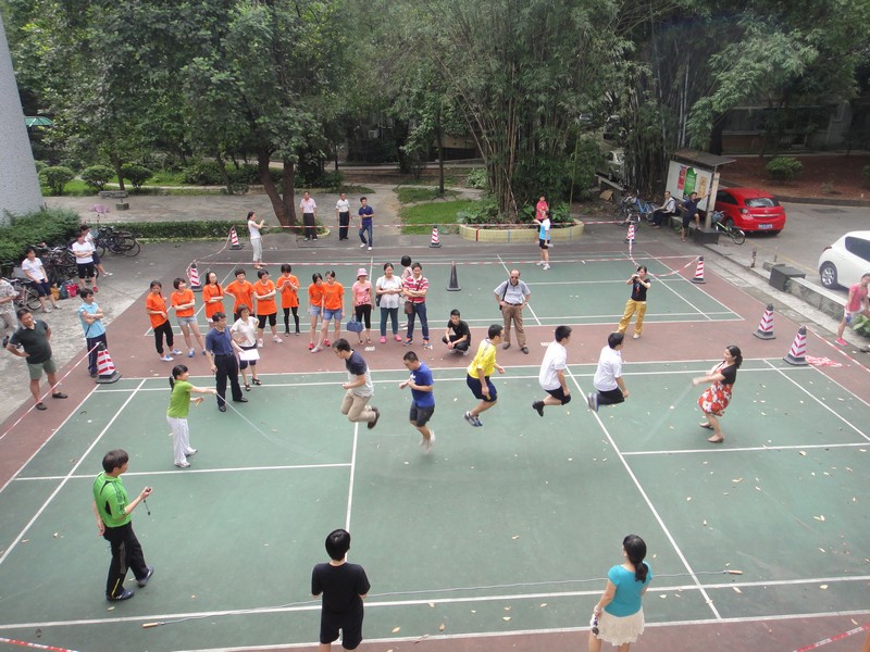 尽管天气闷热无风,但仍无法阻挡参赛教工的热情。赛前,教工们认真准备、热身,跃跃欲试;比赛中,教工们都显得格外年轻,充满了活力,身姿轻盈,努力拼搏,坚持到底,不放弃最后一秒,加油喝彩与欢笑汇成一片。比赛中最吸引眼球的非长绳团体赛莫属了,在一分钟的比赛时间内,两位教工负责摇绳,五位教工起跳,响亮的口号,整齐的动作,创造新成绩后的庆祝,小失误后的相互安慰鼓励,齐心协力,团结协作,团队的力量无限大!