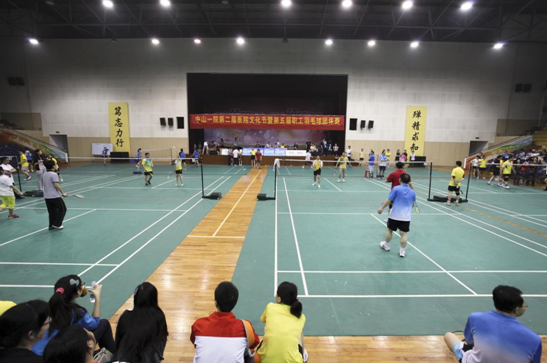 比赛期间,体育馆外正是淫雨霏霏,而馆内几百人的热情高涨,丝毫没有受到恶劣天气的影响。整个赛事紧张激烈,运动员们的相互鼓劲声、啦啦队的呐喊声此起彼伏,把比赛推向一个又一个高潮!当大家还在对刚刚结束的后勤与东山院区的决赛津津乐道时,期盼已久的表演赛又隆重上演,王深明院长分别与钟嘉伟、邱文霞两位专业队员搭档,对阵本届团体赛冠亚军队中的男双选手,他们精湛的球艺对决将球赛再次推向沸点。