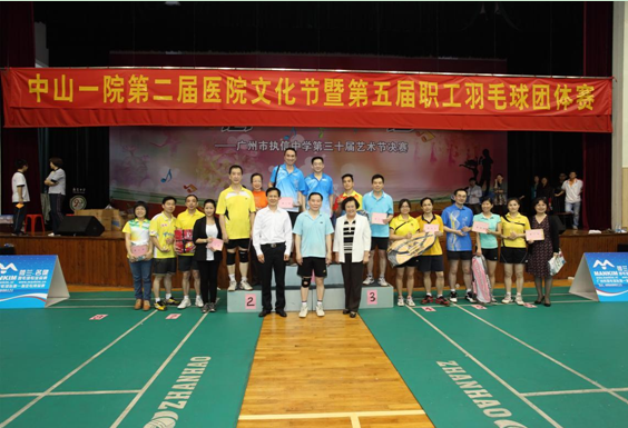 由院工会主办的附属一院2014年第五届职工羽毛团体球赛于5月8日晚上在执信中学体育馆落下帷幕。王深明院长参加了本次活动,肖海鹏书记和黄建明主席出席了比赛的颁奖仪式。