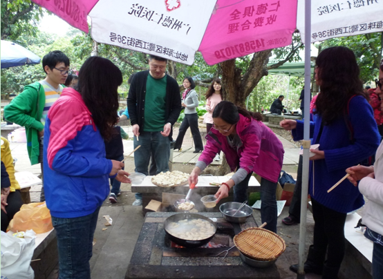 全院教职工都积极参与,并携亲属共同出席活动。比赛过程中,大家热情高涨,纷纷现场展现出了各自的绝活儿。山东韭黄水饺、广式蛋糕、健康核桃五谷面包、家乡翡翠脆饼、宝石香芋饼、秘制卤牛肉、新疆烤羊肉串、云南小吃炸酥肉等30余种具有全国各地方特色的菜式和小吃。其中家乡翡翠脆饼、宝石香芋饼是由张淑娟老师带领环科所小队特地从清远带回芭蕉叶、自制超长竹筷、春天茭头、香芋等材料,亲自为大家料理的。大家尽心烹饪,各显神通。每当一款美食出炉便激起一片抢食高潮。活动在此起彼伏的赞声、欢笑声中走入尾声。