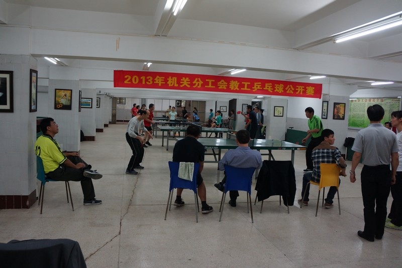 为了庆祝我校建校89周年,增进机关教职工身心健康,活跃校园氛围,机关分工会于2013年11月举行了乒乓球公开赛。赛事设男子单打、女子单打、男子双打、女子双打、混合双打五个项目,分别于11月21、28日两天在南校区梁銶琚堂机关教工之家举行。机关乒乓球爱好者报名踊跃,共有69人报名参加了比赛。机关分工会的车平主席担任了竞赛组长,分工会委员参加了裁判等工作。比赛精彩纷呈——不论男女老少,不分群众领导,或拉球或搓球,或旋球或削球,你来我往,左推右挡,虽然难分高下,定要决出胜负,或强攻或固守,或智取或力拼,参赛队员们在赛场上充分展现出自己的个人魅力。全部比赛圆满结束,决出了各项目的前三名。