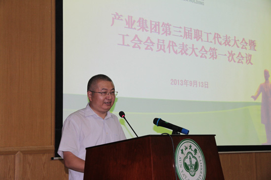 集团总经理、党委书记谷晓丰向大会作了产业集团(中大控股)经营情况通报,主要包括中大控股和投资企业的经营现状以及对中大控股未来发展的几点思考。他介绍了中大控股2012年部分经济数据及总体情况,对中大控股及投资企业2013上半年经营现状进行了分析,并进一步指出中大控股的优势、亮点和不足。他认为中大控股应围绕学校中心工作,同时继续坚持企业管理系统的建设,按照2011年发布的《未来五年发展规划》努力向前推进。他最后指出集团应该依靠群众,坚持群众路线,保证稳定第一。