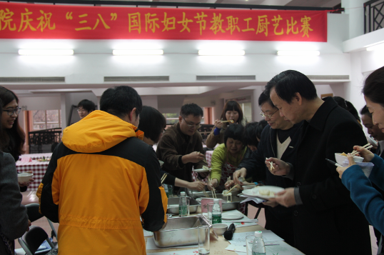 3月1日下午,岭南学院工会组织学院女教职工举办了厨艺比赛。比赛分为包饺子比拼和水果拼盘比拼两项,10组“饺子队”共30名女教职工、6组“拼盘队”共12名女教职工参加比赛。学院工会卓鸥主席及教师代表等8位组成评委团,对参赛选手的成果进行品尝、评判。最后在包饺子比拼中由“美食美客”队获第一名,“俏岭南”队获第二名,“盛谷坊”队获第三名。水果拼盘比拼中,“课程班”获第一名,“潮妈2+1”获第二名。其余各队都获得鼓励奖。党委张文彪书记为获奖队颁奖。