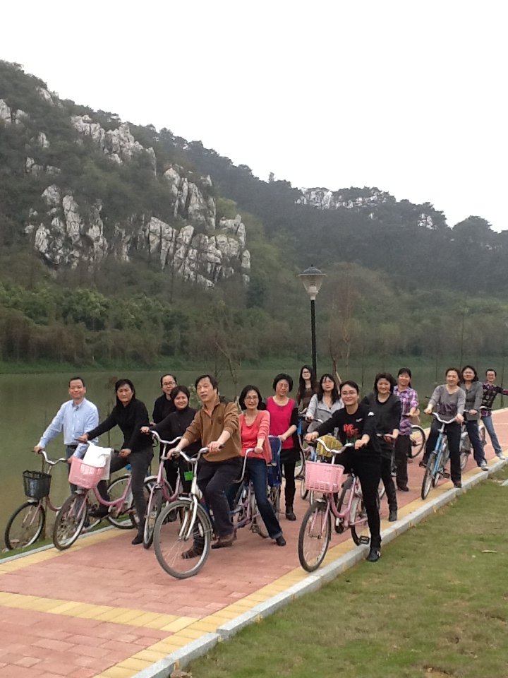 3月16日下午,数计学院分工会组织学院女教职工进行肇庆学院交流、九龙湖赏花和绿道骑游等活动。学院20多名女教工受到了肇庆学院数学与信息科学学院院长令锋教授、党委书记付本路副教授、副院长罗家贵教授、党委副书记苏文英老师等领导和行政人员的热情接待。在座谈交流会上,令锋院长首先介绍该院的基本情况,特别是师资队伍建设、专业设置、教学安排等。我院副院长程月华副研究员、尹小玲副教授、张俊玉副教授等也分别介绍我院的学科建设、师资队伍、科研工作等发展现状。随后,双方就教学、科研、行政管理、学生就业等问题进行了广泛的交流。会后,在数学与信息科学学院工作人员的陪同下,老师们参观了肇庆学院美丽的校园。学院分工会还安排女教职工游览肇庆九龙湖景区、星湖绿道等地,并进行绿道骑游等健身活动。本次活动在加强学院女教职工沟通交流的同时,也使女教职工身心得到了放松。