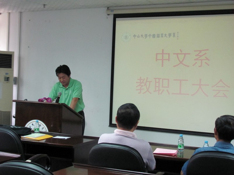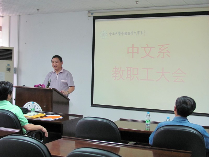 中文系于9月21日在中文堂召开了首届教职工大会。全系教职工除正在上课的老师外,全部到会。校工会发来了贺信,校工会李烨副主席到会并致辞。中文系李炜代主任全面地报告了中文系的年度工作情况。(中文系直属部门工会)