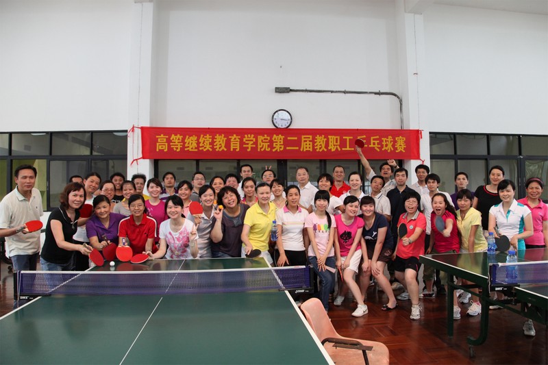 为积极响应校工会“幸福广东 健康中大”的号召,高等继续教育学院直属部门工会于2011年6月8-9日下午在南校区英东体育馆二楼乒乓球室举行了学院第二届教职工乒乓球比赛。