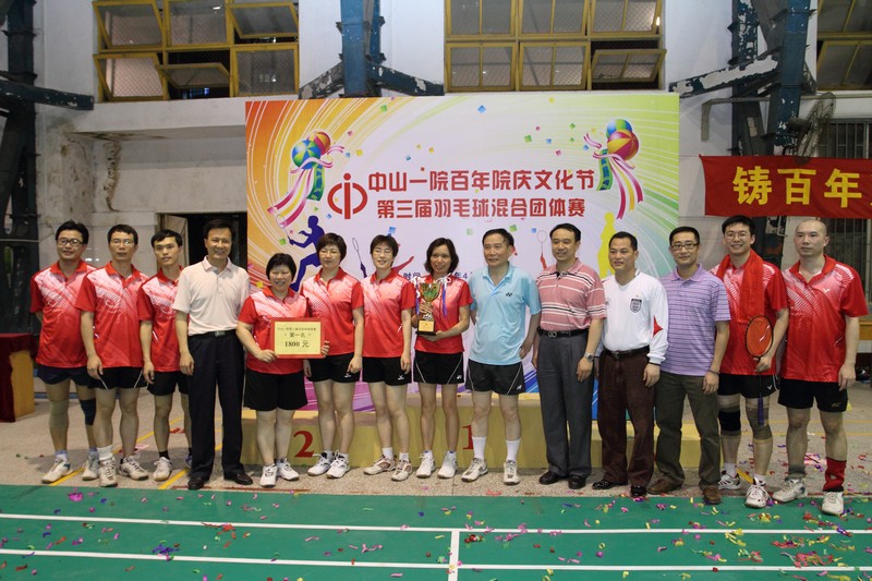 由一院工会主办,波力华南广东分公司协办的yl23455永利集团附属第一医院百年院庆活动第三届羽毛球团体赛于4月20、22、27日和5月6日晚上在我校北校区体育馆成功举行。王深明院长、肖海鹏副院长、工会刘洪宁主席与800多名教职工参加了这次活动。经过激烈的角逐,儿科/特诊中心/手术麻醉科工会联队荣获第一名,外科/中皮/五官工会联队荣获第二名,黄埔院区工会代表队获第三名,行政/后勤联队获第四名,其余四支联队同获第五名。