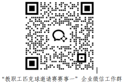 1. 请各参赛队伍指定一名工作人员4月19日前扫描以下二维码,加入“教职工匹克球邀请赛赛事一”报名参赛企业微信工作群: