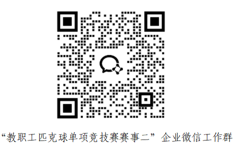 1.请各参赛队伍指定一名工作人员于2026年5月20日前扫描以下二维码,加入“教职工匹克球单项竞技赛赛事二”报名参赛企业微信工作群: