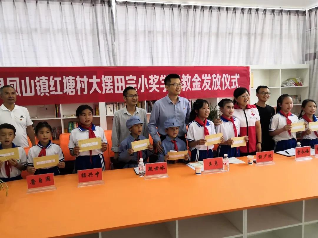 仪式上,在场嘉宾分别向大摆田完全小学首批10名优秀学生颁发了奖学金。获奖学生与线上参与活动的嘉宾、老师合影留念。学生代表朗读了感谢信,感恩叔叔阿姨们的帮助,也表达了自己通过知识筑梦未来的渴望。