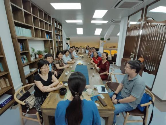 品茶的过程中,大家聊点儿文化,也谈点儿生活,老师们都兴趣盎然。物理人仿若白矮星一样有一大串充满能量的问题和心得,心理人就像中微子似乎无力、无形,但是无处不在地感知、抚摸着一切。茶,一片特殊的树叶,联系了貌似不同的两个领域的人。原来,我们都是一样的:爱茶、敬业。