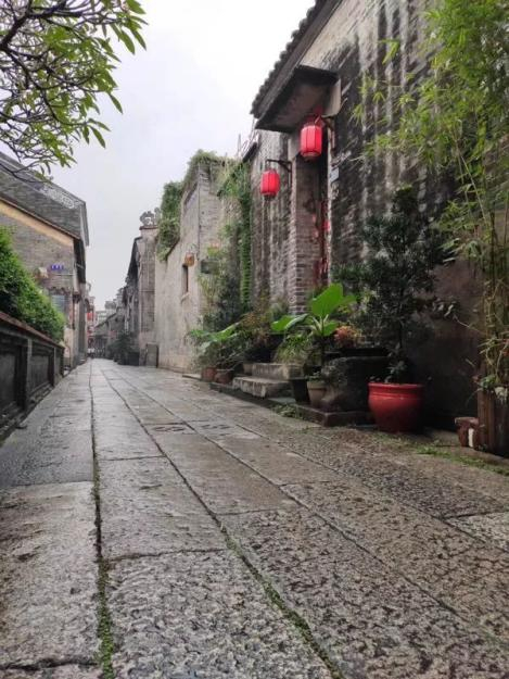 21日上午,在微微小雨中,学院教职工统一乘车前往位于广州番禺的沙湾古镇,开启一天的踏青赏春的活动。斜风细雨,南国晚春一派繁荣,谈笑中不知不觉抵达沙湾古镇。