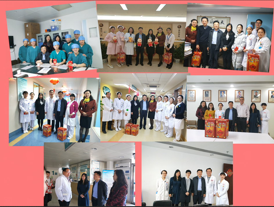 在2019年春节即将来临之际,附属六院党委书记李汉荣,党委副书记、纪委书记李冠宏,以及工会、党政办、护理部、人力资源部负责人一行,走访慰问了临床一线医护人员和困难党员、困难职工,送去了新春祝福和问候。