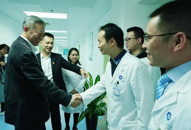 在门诊药房、临床技能模拟培训中心和广东省医学影像重点实验室,陈春声书记看望了一线师生员工,慰问了援非援疆援藏干部和家属代表,并与他们亲切交谈。