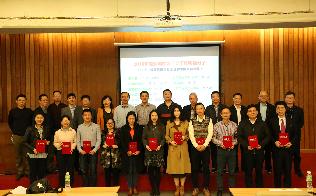 12月26日下午,深圳校区联合分工会举办2018年度工会工作总结会,向学校工会、校区学院汇报年度工作,探讨学院办学初步完备后校区工会工作的思路。学校工会副主席彭志刚、组织部正处级组织员李永乐、校区管委会副主任(主持工作)罗愈业,校区学院党务领导、行政教辅人员等近40人应邀参加了会议。会议由分工会组织委员、智能工程学院党委副书记黄达峰主持。